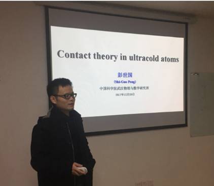 彭世国副研究员在报告中首先介绍了少体物理方面的普适的檀系数理论,介绍了檀系数的起源,少体物理与多体物理的关系,并在此基础上介绍了自己最近在自旋轨道耦合费米子的檀系数解析计算方面的工作。报告后,师生们针对自己感兴趣的问题向两位报告人积极提问,两位报告人也均给出相应的解答。